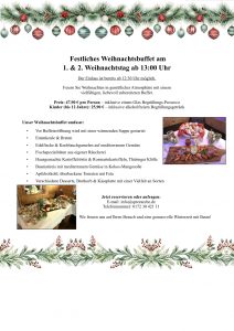 Am 25.12 & 26.12 haben wir ab 13:00 Uhr geöffnet für unser Weihnachtsbuffet.